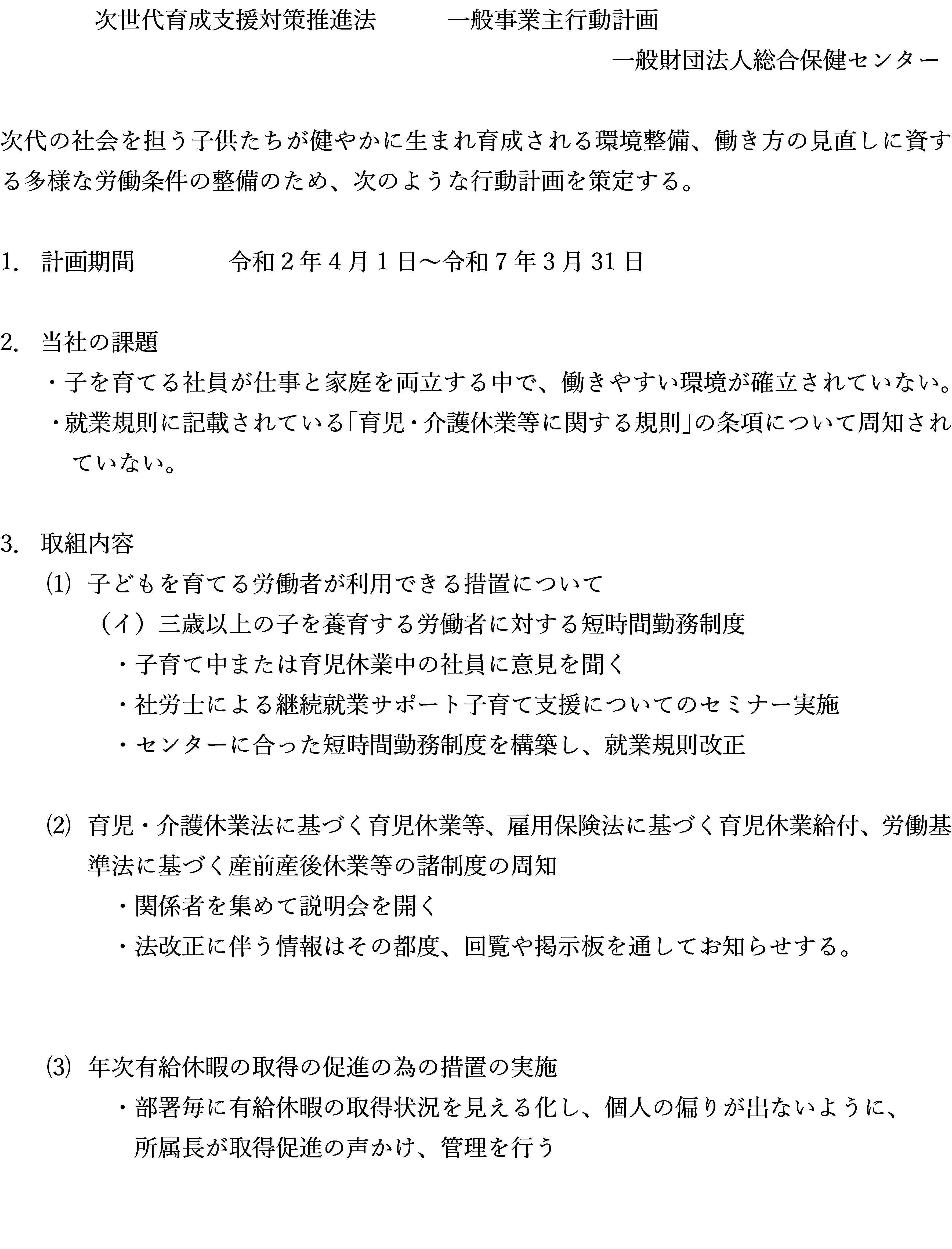 次世代育成支援対策推進法・一般事業主行動計画 ・クリックするとPDFファイルが開きます